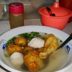 Ini salah satu bakso kakap yang porsinya pas dan rasanya selalu bikin nagih. Lebih lagi disini ada pangsit goreng isi udang yang super gurih, cocok banget dimakan sama bakso kakap panas. Satu porsi bakso kakap sudah termasuk bakso kakap kuah, goreng serta pangsit. Kalau sore kesini, selalu rame karena bukanya baru pukul 17.00 WIB. Bakso kakap ini berlokasi di Jalan Puspanjolo Tengah Raya.