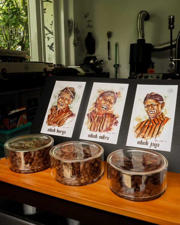 Apa yang kebayang waktu bilang “Nggone Mbahmu”?? Sudah pasti kebayang simbah-simbah alias kakek nenek. Tapi, sampai sini, dugaan pemilik coffee roastery adalah mbah-mbah sirna sudah. Pemiliknya ternyata masih muda dan super ramah. Waktu ditanya, “ kenapa Namanya Nggone Mbahmu”, dijawab Tante pemilik, “biar lucu aja” dengan senyum simpul.
