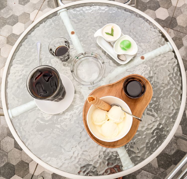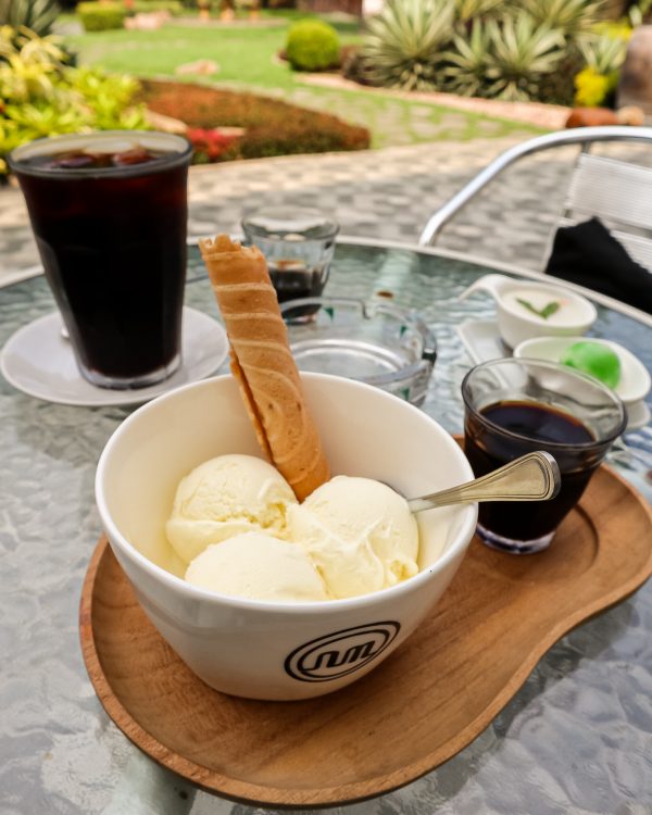Karena konsep awal dari Nggone Mbahmu merupakan coffee roaster, bukan sebuah coffee shop, jadi menu yang disediakan sangat terbatas. Untuk kopi terdapat 3 pilihan menu kopi yang dapat dipilih pelanggan yaitu Mbah Karyo, Mbah Mitro, dan Mbah Joyo. Selain kopi, mereka juga punya beberapa menu kudapan pendamping kopi seperti klepon dan kue talam. Adapula satu menu favorit yaitu ice cream, yang bisa disajikan dengan kopi jadi semacam affogato. Buat yang gak bisa minum kopi pun, ini sangat recommended karena rasanya beneran nikmat.