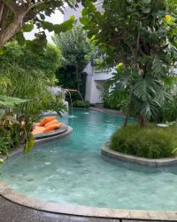 Salah satu yang cukup menarik perhatian dari hotel ini adalah adanya kolam renang dengan konsep tropical garden. Kolam renangnya berada di tengah pepohonan hijau dan cukup rindang. Di area kolam juga terdapat cushion untuk bersantai menikmati hari. Beberapa kamar juga memberikan akses kemudahan ke kolam renang ini.